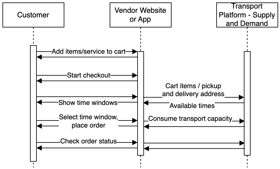 - Pre-Checkout (very low latency): Query available delivery windows or pick-up times and associated prices, providing the cart contents, delivery address, and pick-up address if applicable.